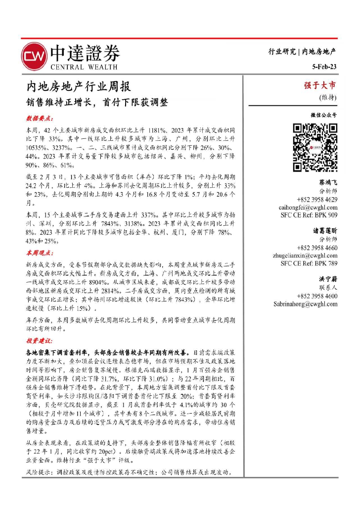中达证券投资:内地房地产行业周报:销售维持正增长,首付下限获调整.pdf