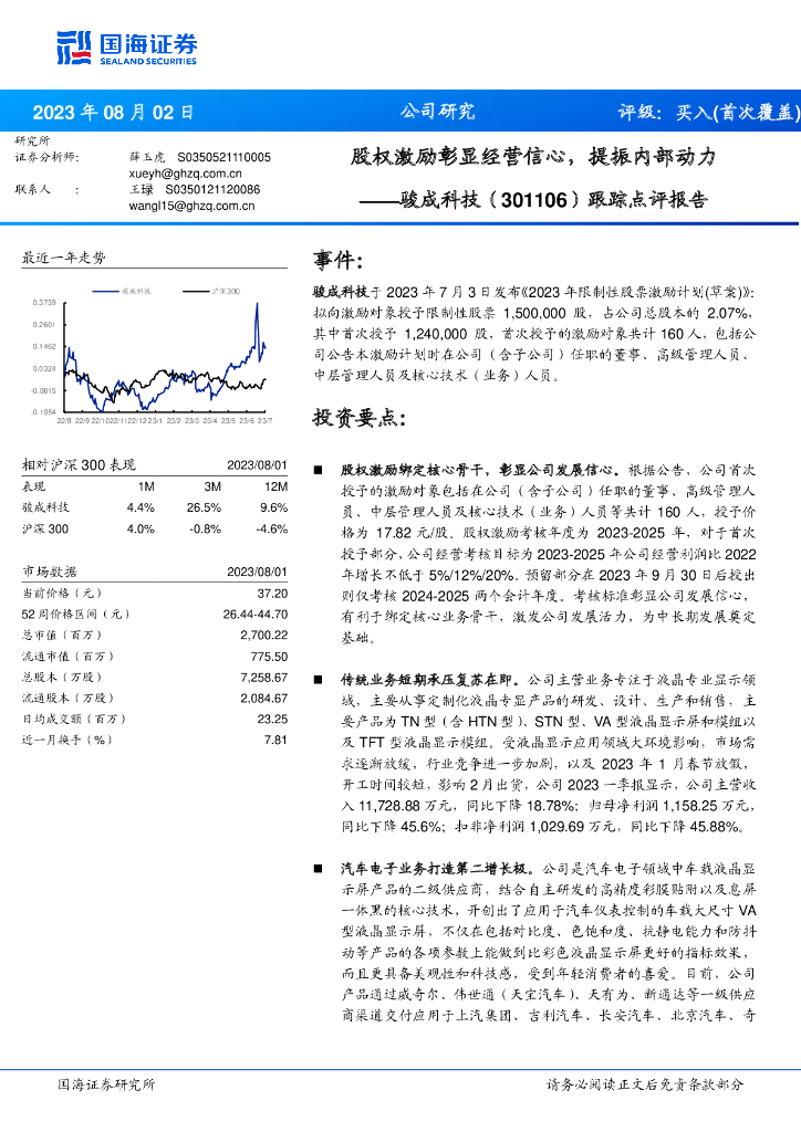 国海证券:骏成科技(301106)-跟踪点评报告:股权激励彰显经营信心,提振内部动力.pdf