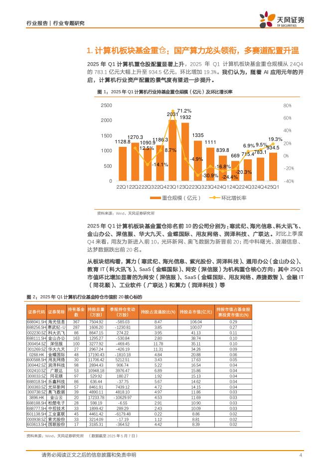 天风证券:计算机一季报分析:算力和信创景气度有望再上一个台阶,关注SaaS类公司Agent放量进度.pdf