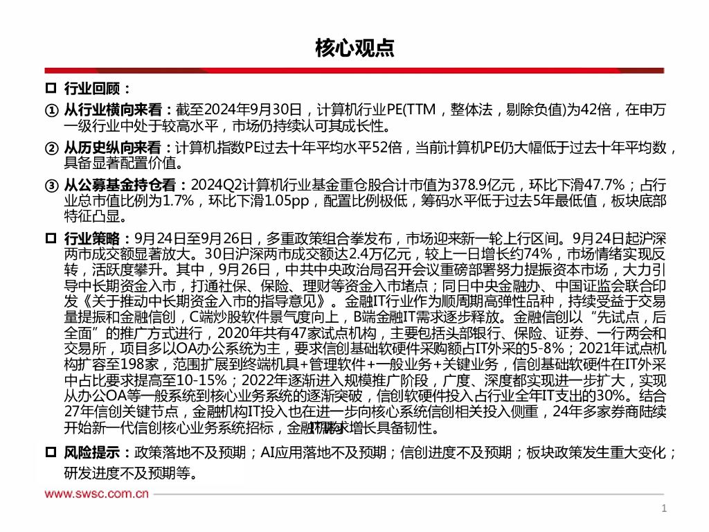 西南证券:计算机行业观点:多重政策组合拳发布,关注顺周期高弹性金融IT板块.pdf