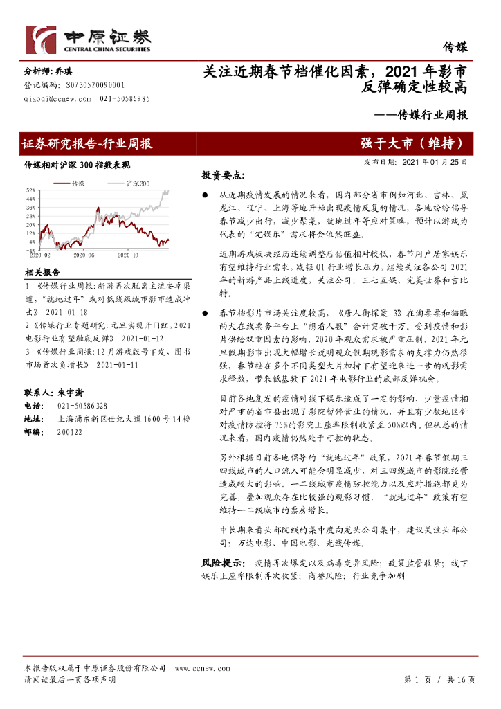 中原证券:传媒行业周报:关注近期春节档催化因素,2021年影市反弹确定性较高.pdf