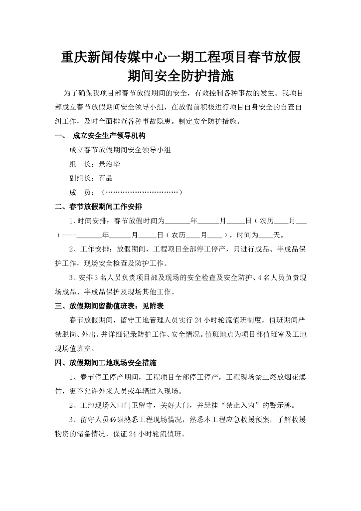 中冶_项目部春节期间安全防护措施方案.doc