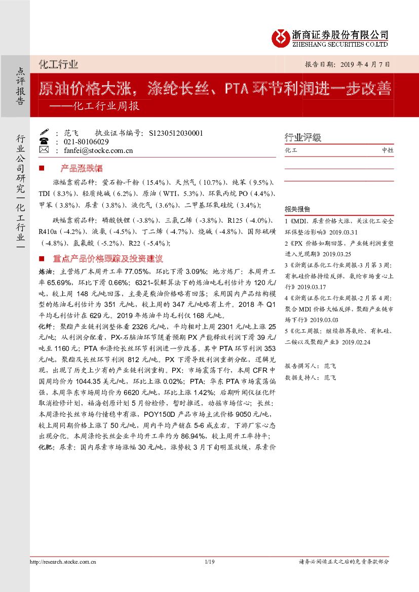 浙商证券:化工行业周报:原油价格大涨,涤纶长丝、PTA环节利润进一步改善.pdf
