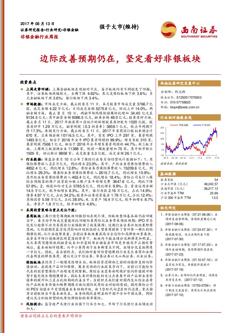 西南证券:非银金融行业周报:边际改善预期仍在,坚定看好非银板块.pdf