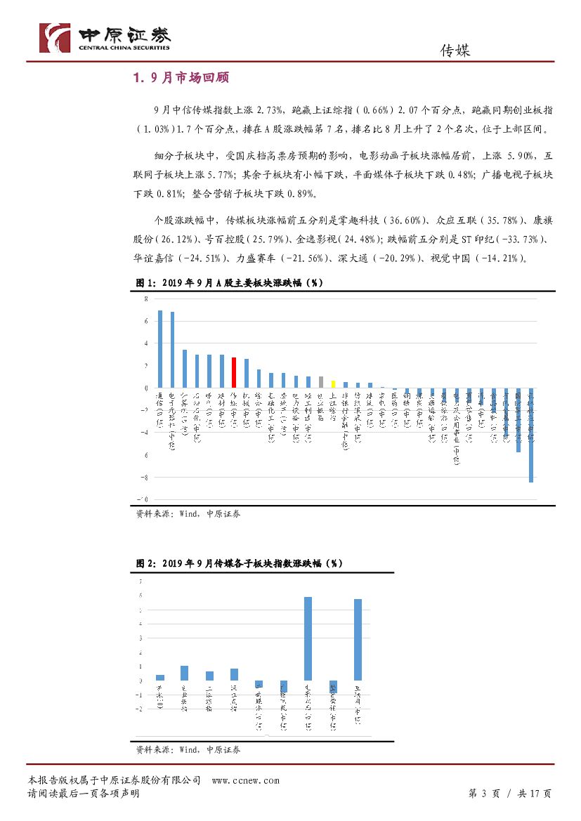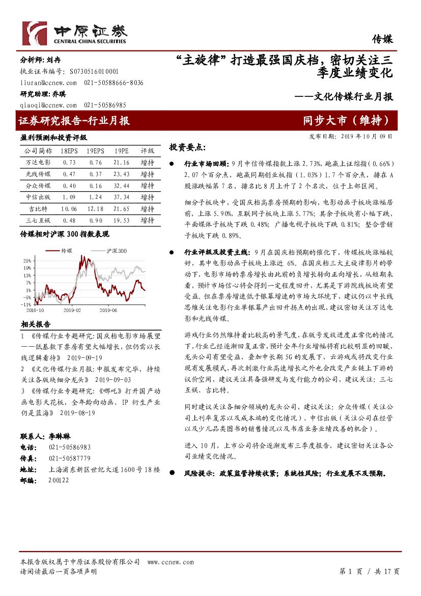 中原证券:文化传媒行业月报:“主旋律”打造最强国庆档,密切关注三季度业绩变化.pdf