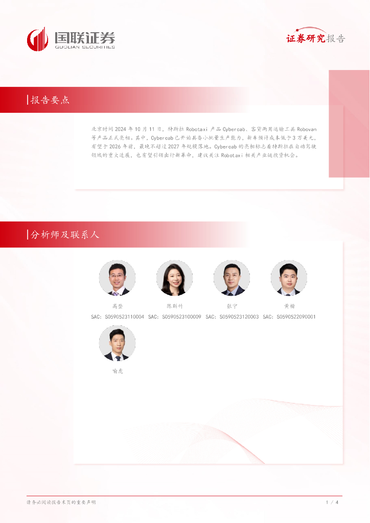 国联证券:汽车行业点评研究:特斯拉Robotaxi正式亮相,有望引领出行新革命.pdf