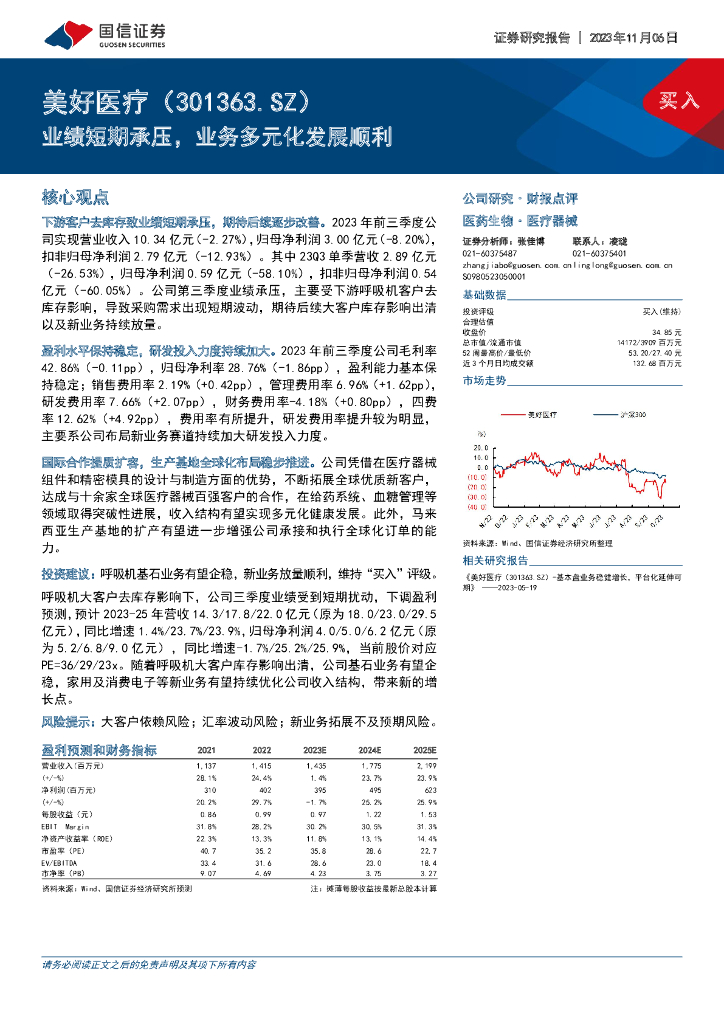 国信证券:美好医疗(301363)-业绩短期承压,业务多元化发展顺利.pdf