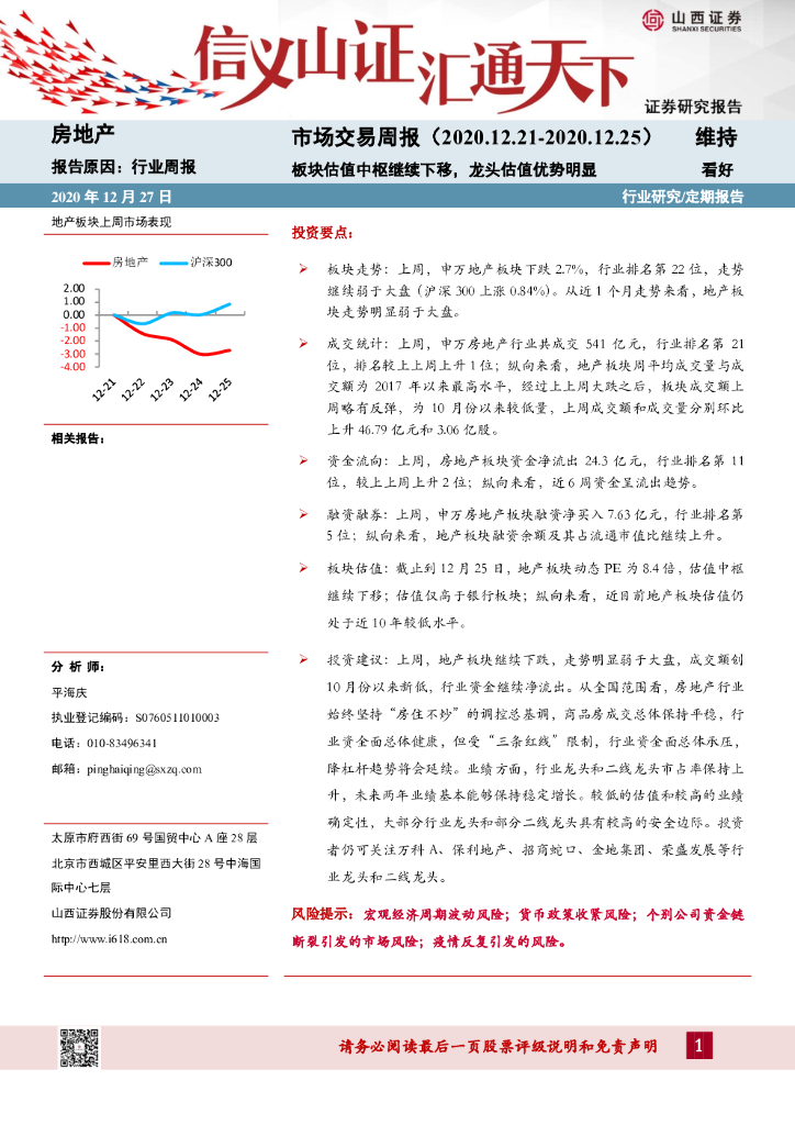 山西证券:房地产市场交易周报:板块估值中枢继续下移,龙头估值优势明显.pdf