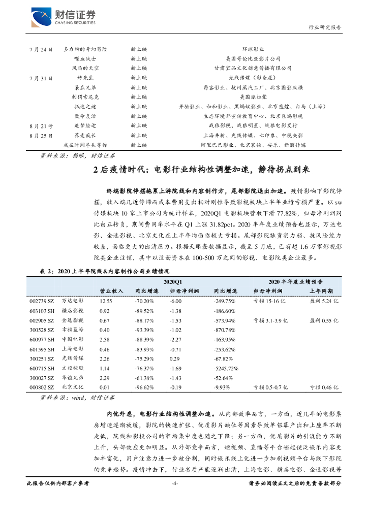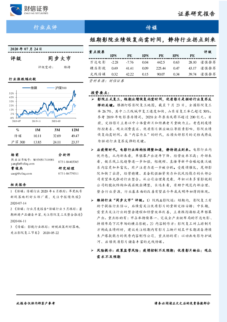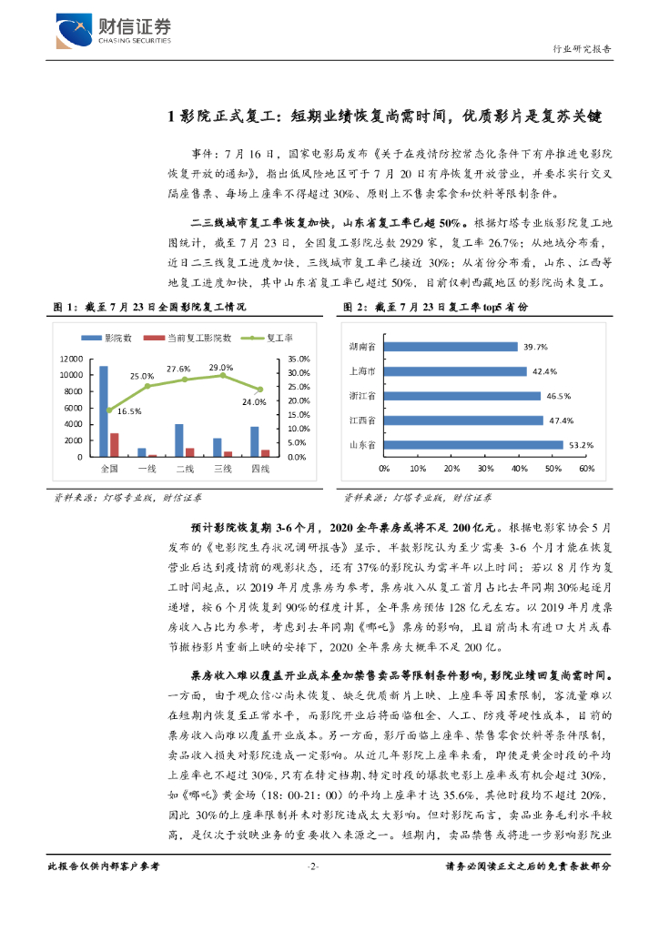 财信证券:传媒行业点评:短期影院业绩恢复尚需时间,静待行业拐点到来.pdf
