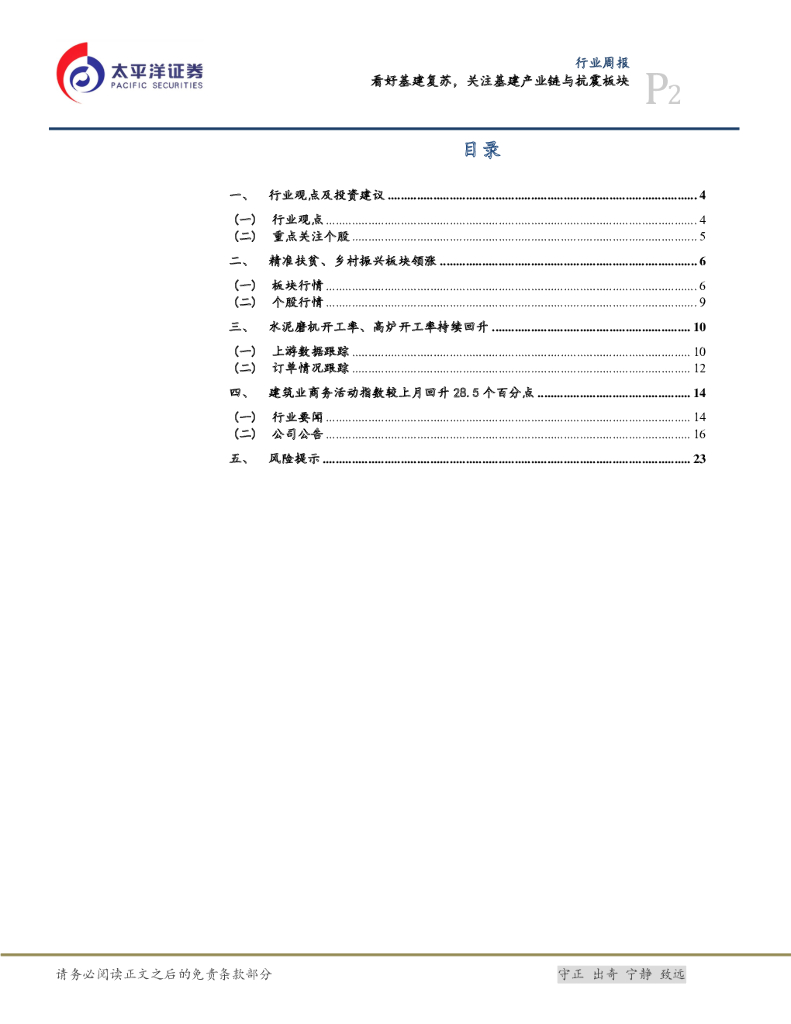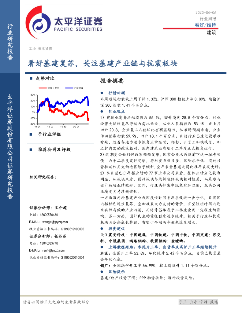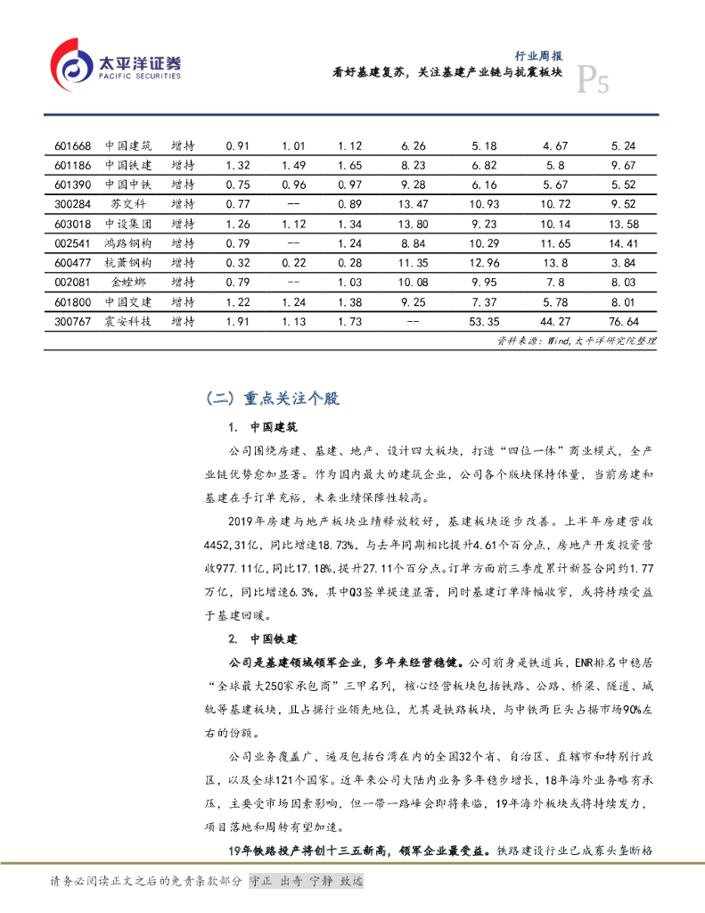 太平洋证券:建筑行业周报:看好基建复苏,关注基建产业链与抗震板块.pdf