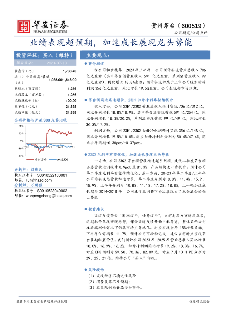 华安证券:贵州茅台(600519)-业绩表现超预期,加速成长展现龙头势能.pdf