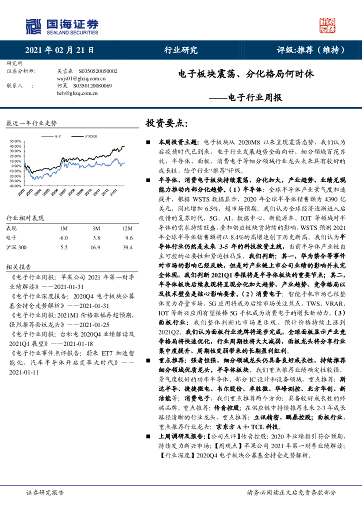 国海证券:电子行业周报:电子板块震荡、分化格局何时休.pdf