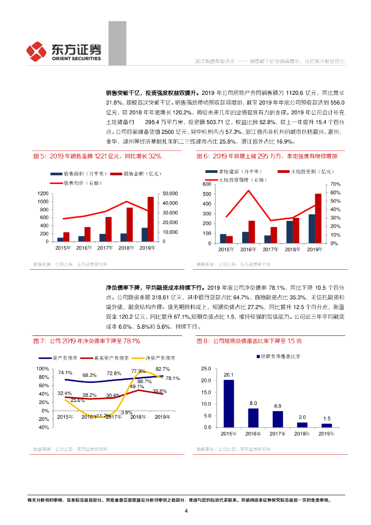 东方证券:滨江集团(002244)-2019 年年报点评:销售破千亿业绩高增长,分红提升彰显信心.pdf