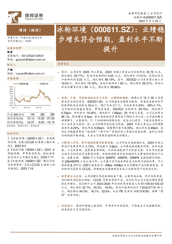 德邦证券:冰轮环境(000811)-业绩稳步增长符合预期,盈利水平不断提升.pdf