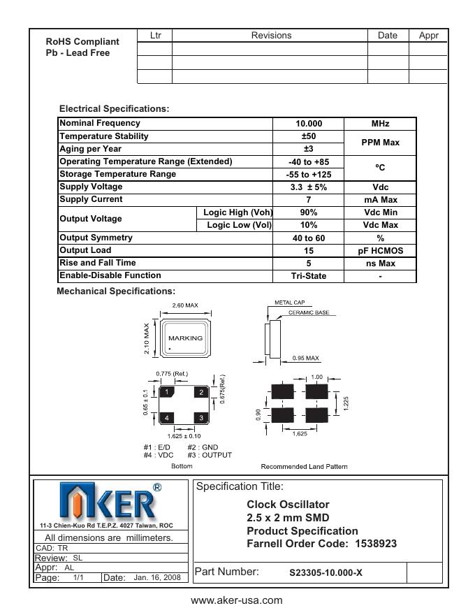 AKER 2.5 x 2 mm SMD Clock Oscillator 数据手册(3).pdf