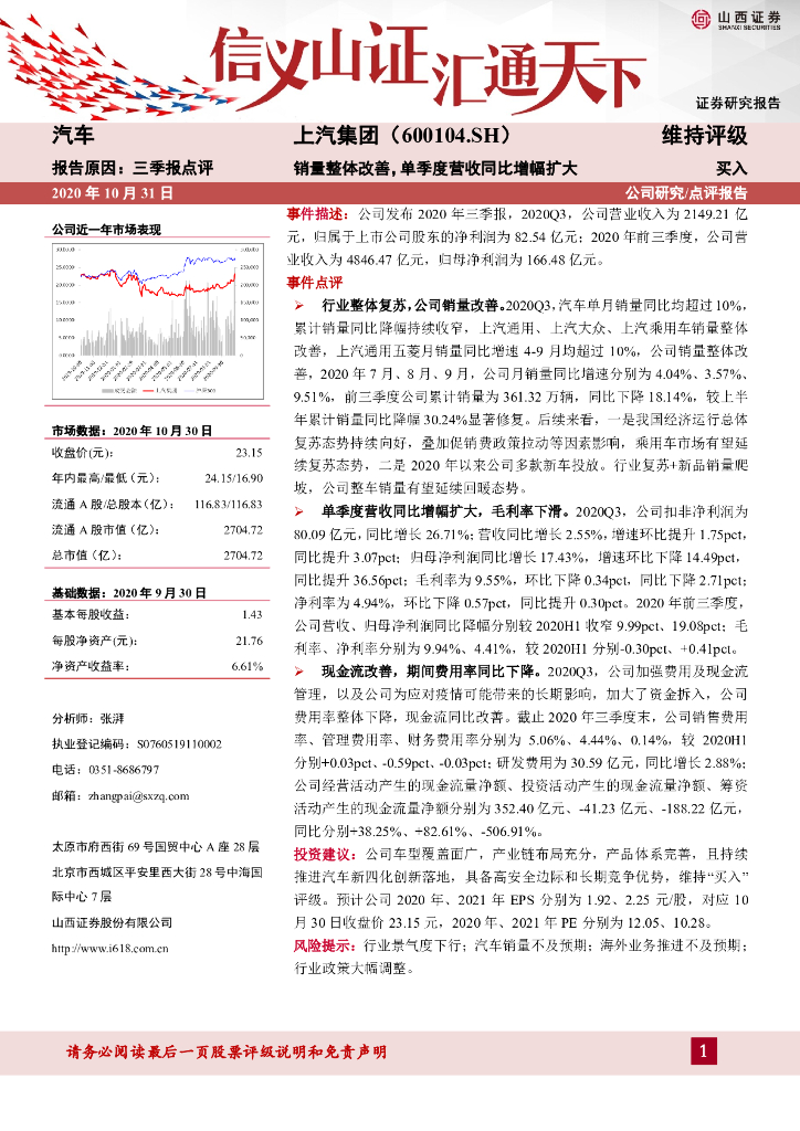 山西证券:上汽集团(600104)-销量整体改善,单季度营收同比增幅扩大.pdf