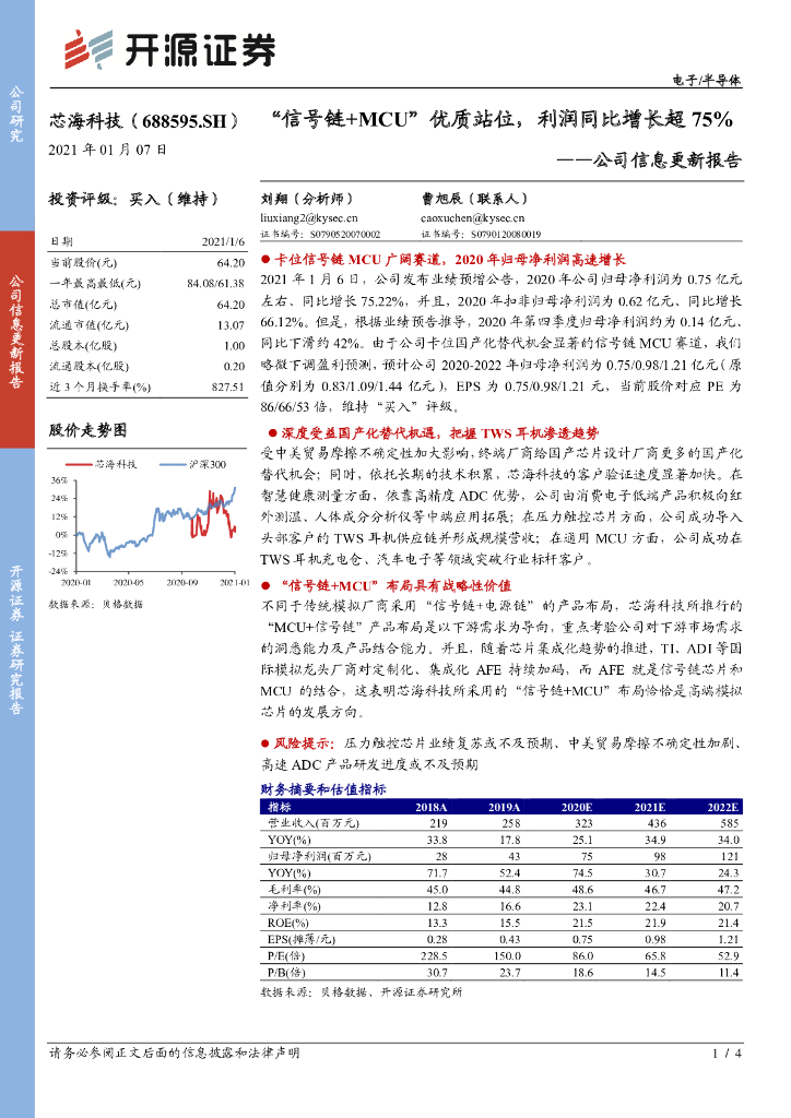 开源证券:芯海科技(688595)-公司信息更新报告:“信号链+MCU”优质站位,利润同比增长超75%.pdf