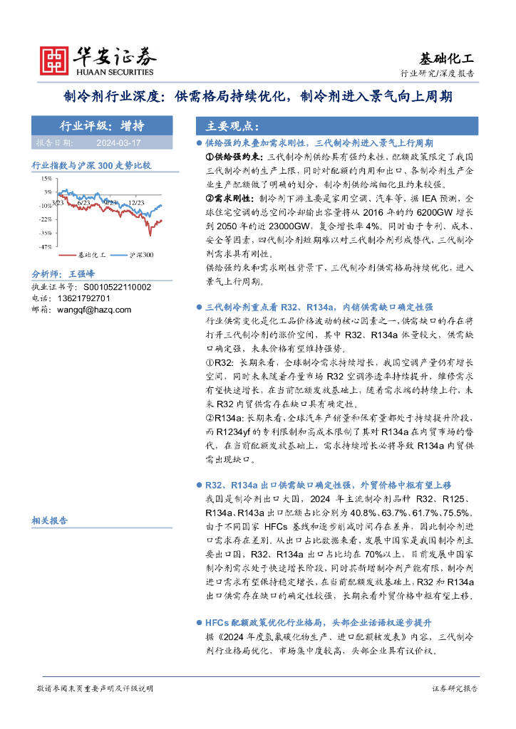 华安证券:制冷剂行业深度:供需格局持续优化,制冷剂进入景气向上周期.pdf