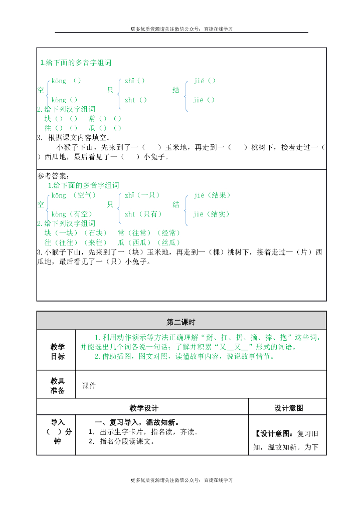 一年级语文下册一下--18 小猴子下山.doc