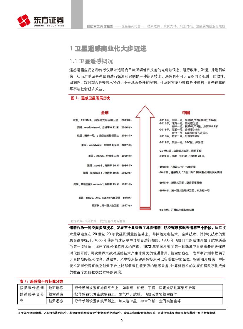 东方证券:国防军工行业深度报告:卫星系列报告一:技术成熟、政策支持、规划落地,卫星遥感商业化启航.pdf