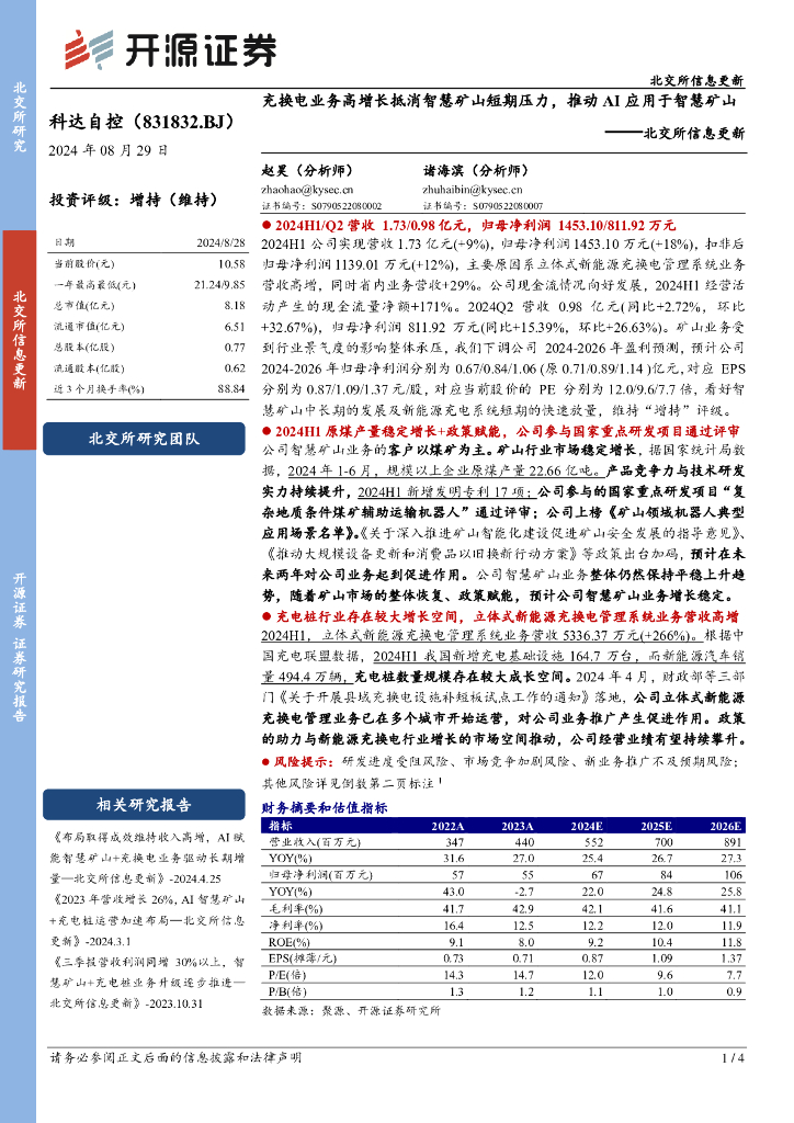 开源证券:科达自控(831832)-北交所信息更新:充换电业务高增长抵消智慧矿山短期压力,推动AI应用于智慧矿山.pdf