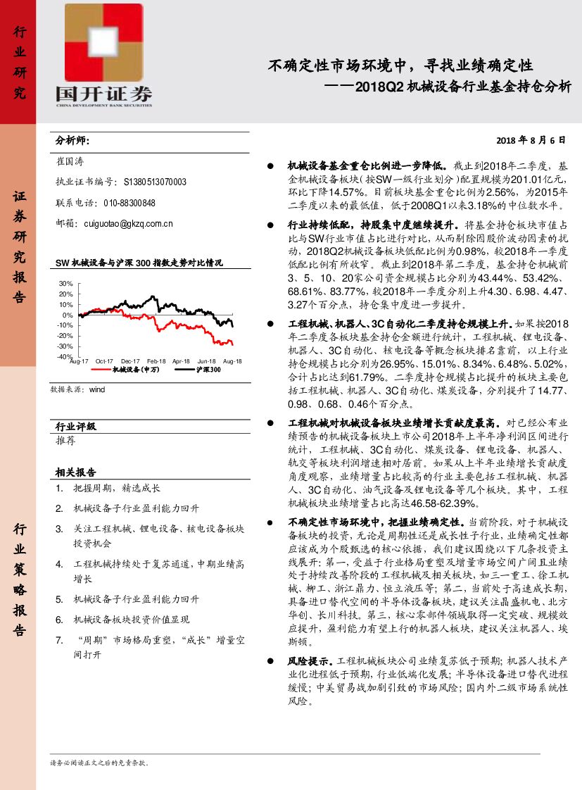 国开证券:2018Q2机械设备行业基金持仓分析:不确定性市场环境中,寻找业绩确定性.pdf