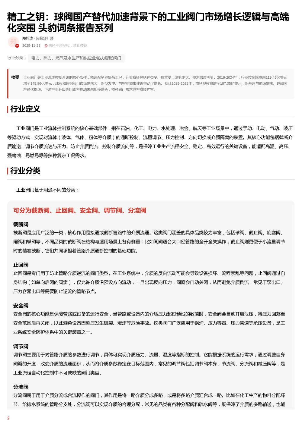 头豹研究院:精工之钥:球阀国产替代加速背景下的工业阀门市场增长逻辑与高端化突围头豹词条报告系列.pdf