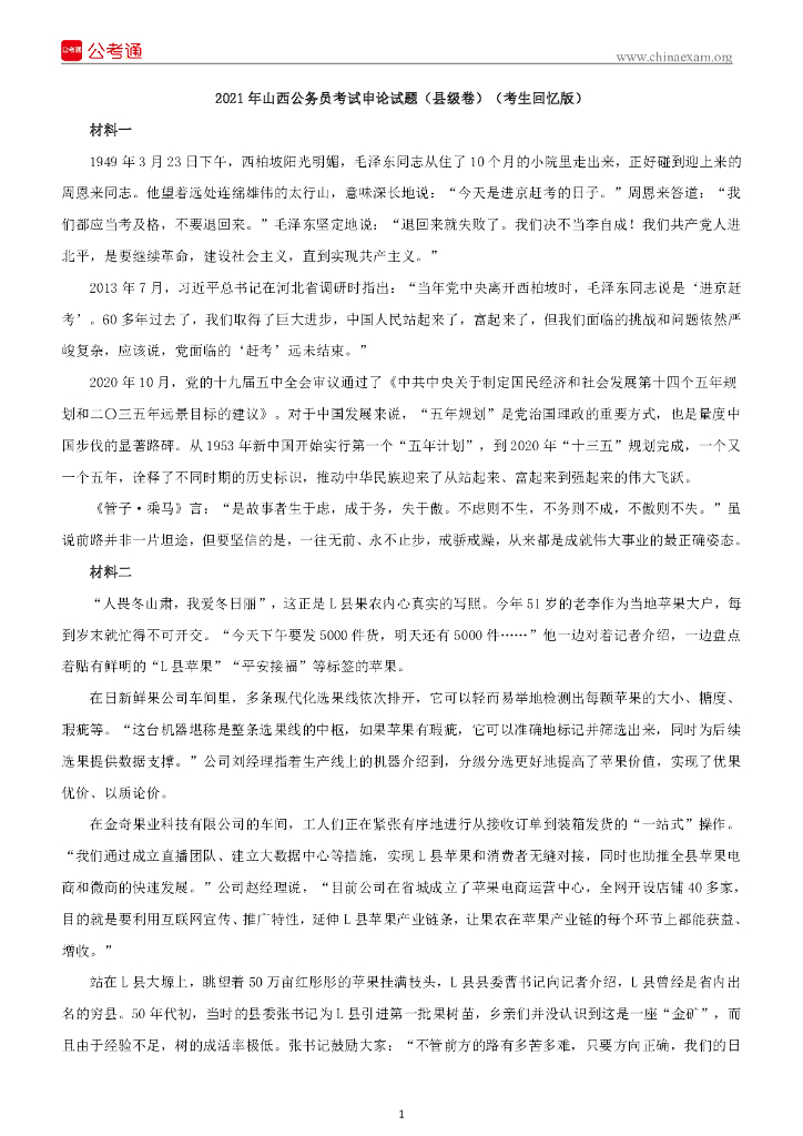 2021年山西公务员考试申论试题(县级卷)(考生回忆版).pdf
