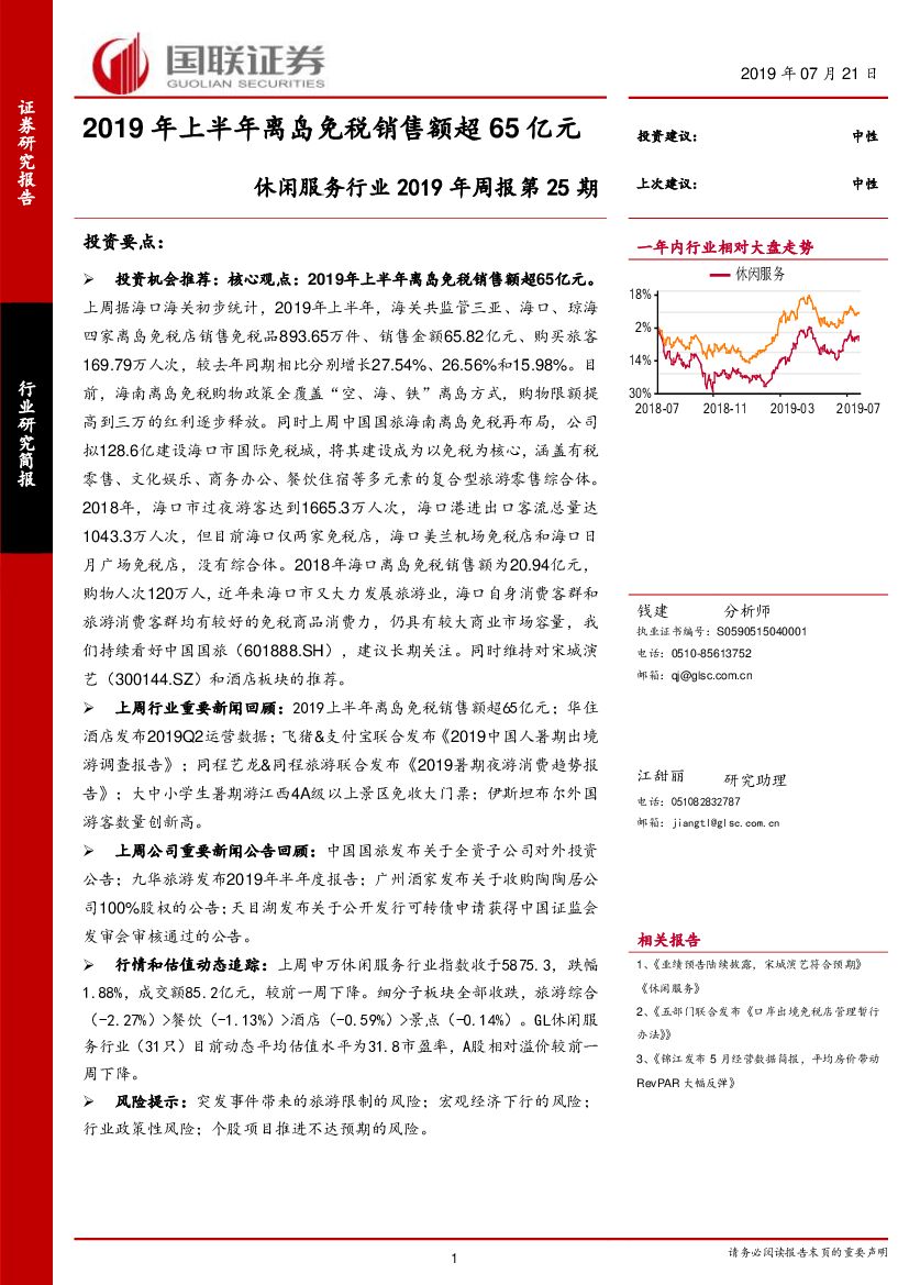 国联证券:休闲服务行业2019年周报第25期:2019年上半年离岛免税销售额超65亿元.pdf