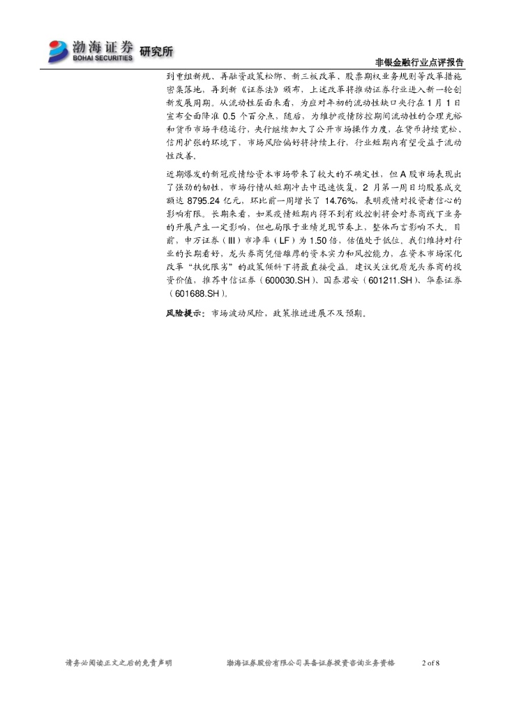 渤海证券:1月上市券商经营数据点评:高基数下券商业绩环比下滑,不改长期向好趋势.pdf