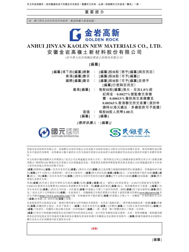 GOLDEN ROCK安徽金岩高岭土新材料股份有限公司港交所IPO上市招股说明书(2025年7月更新版).pdf