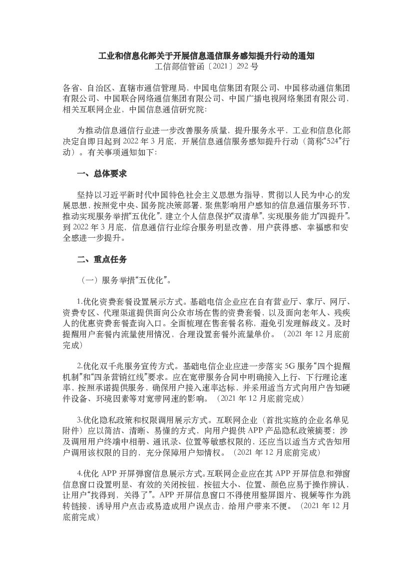 工业和信息化部关于开展信息通信服务感知提升行动的通知.pdf