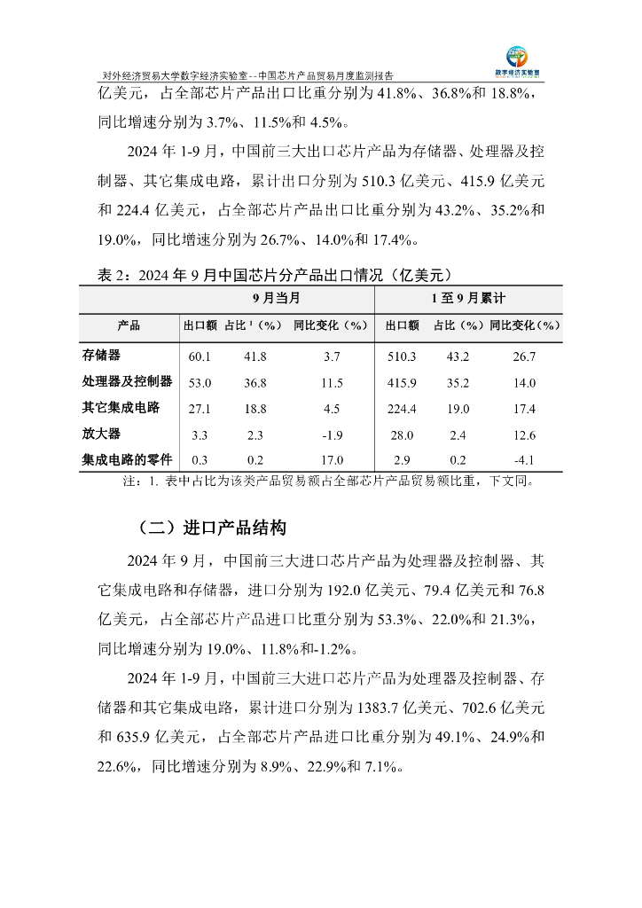 对外经济贸易大学:中国芯片产品贸易月度监测报告(2024年1-9月).pdf