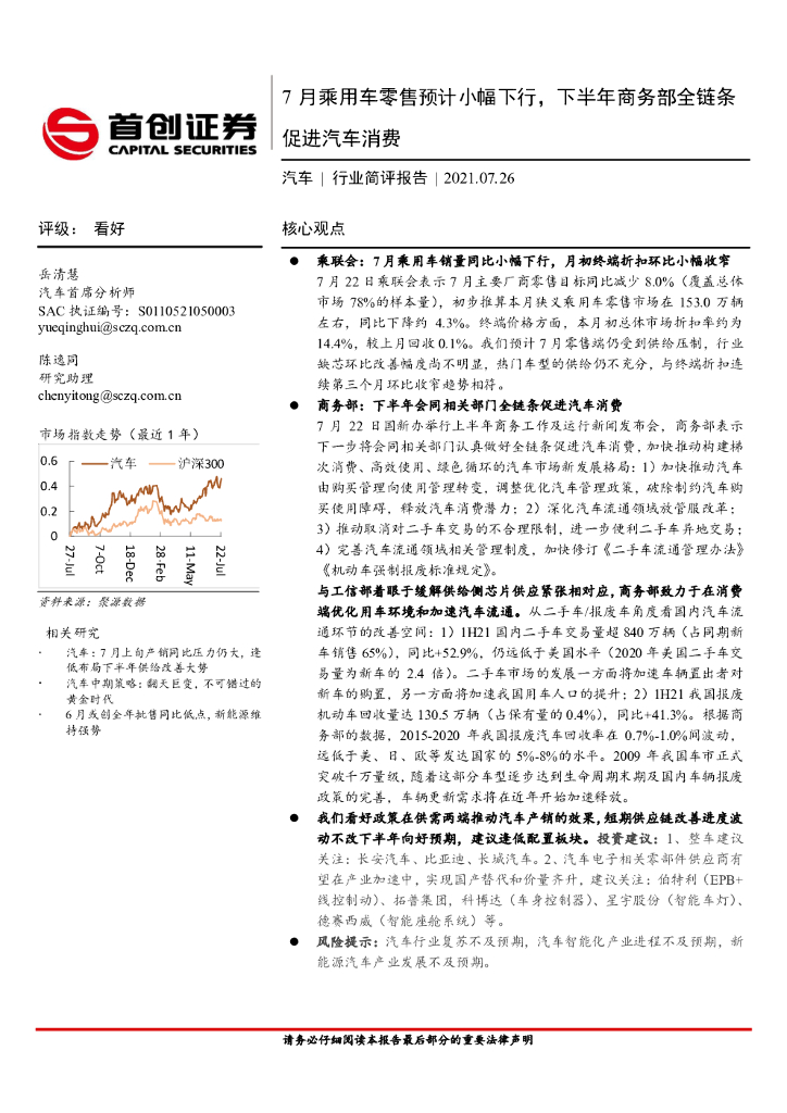 首创证券:汽车行业简评报告:7月乘用车零售预计小幅下行,下半年商务部全链条促进汽车消费.pdf