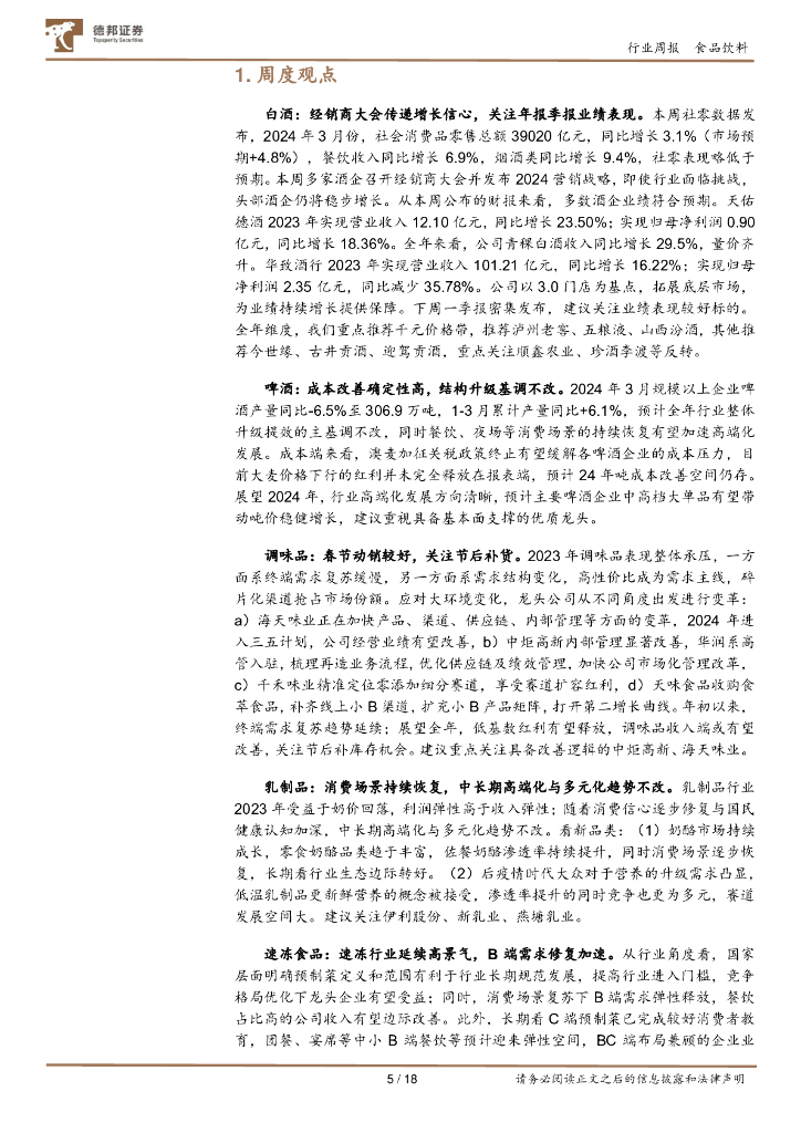 德邦证券:食品饮料行业周报:经销商大会密集召开,关注年报季报业绩表现.pdf