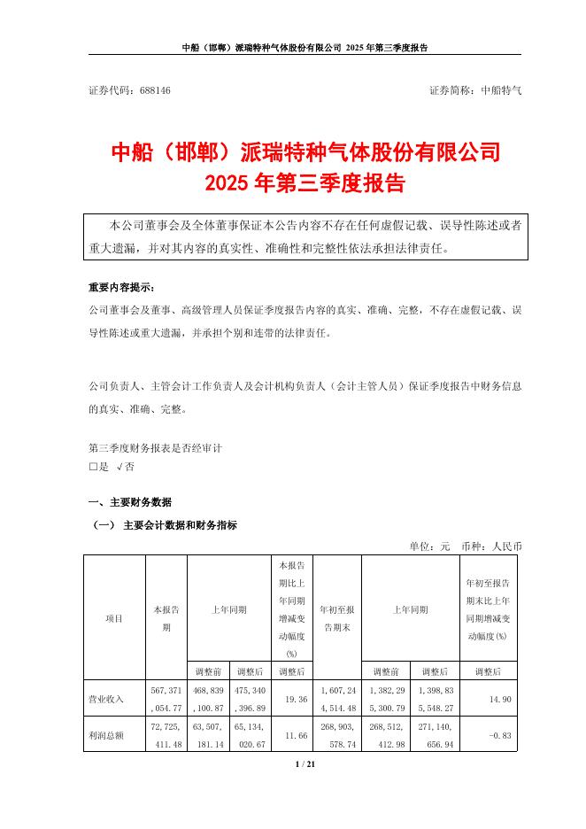 688146-中船特气:中船特气2025年第三季度报告.pdf