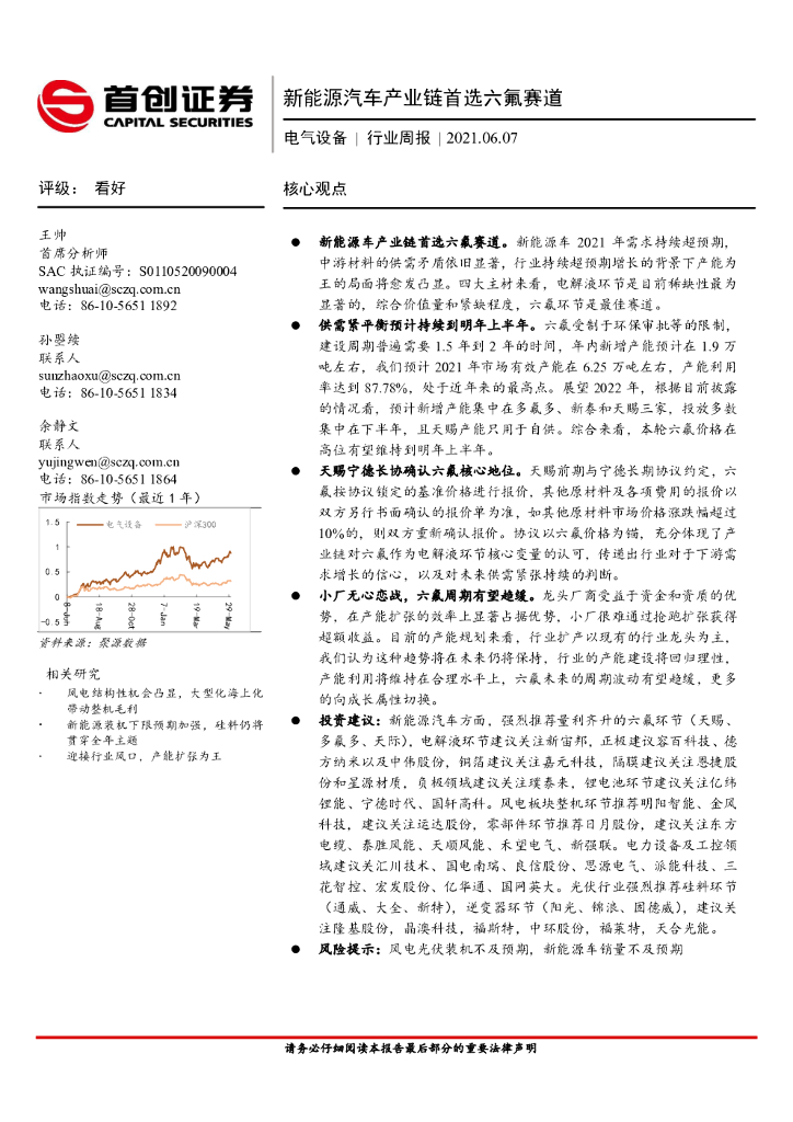 首创证券:电气设备行业周报:新能源汽车产业链首选六氟赛道.pdf