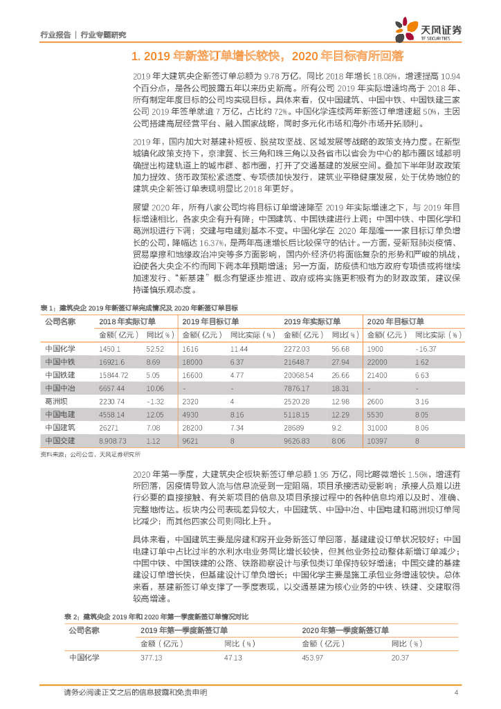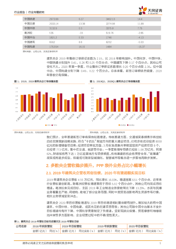 天风证券:建筑央企2019年年报及2020年一季报汇总分析:营收增长势头趋势不改,盈利能力有待稳步回升.pdf