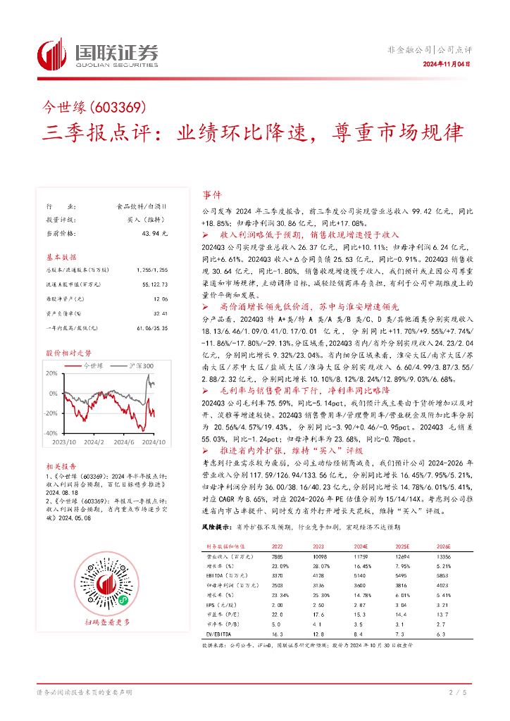 国联证券:今世缘(603369)-三季报点评:业绩环比降速,尊重市场规律.pdf