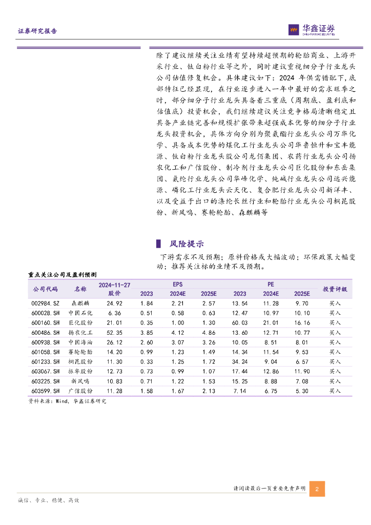 华鑫证券:基础化工行业周报:硫磺、天然气等涨幅居前,建议继续关注钛白粉板块和轮胎板块.pdf