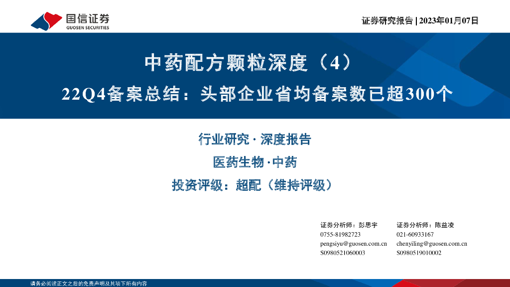 国信证券:中药配方颗粒深度(4):22Q4备案总结:头部企业省均备案数已超300个.pdf