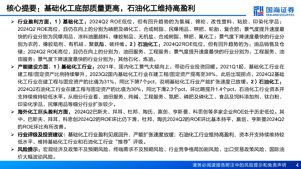 国海证券:化工行业专题报告:国内盈利企稳回升,产能扩张放缓,欧美多数企业盈利仍在底部——2024H1半年报总结.pdf