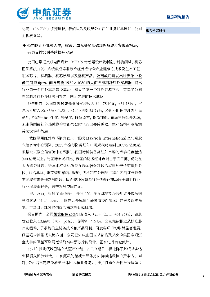 中航证券:睿创微纳(688002)-2023年中报点评:净利润+129%,红外主业持续发力,微波新业务高速增长.pdf