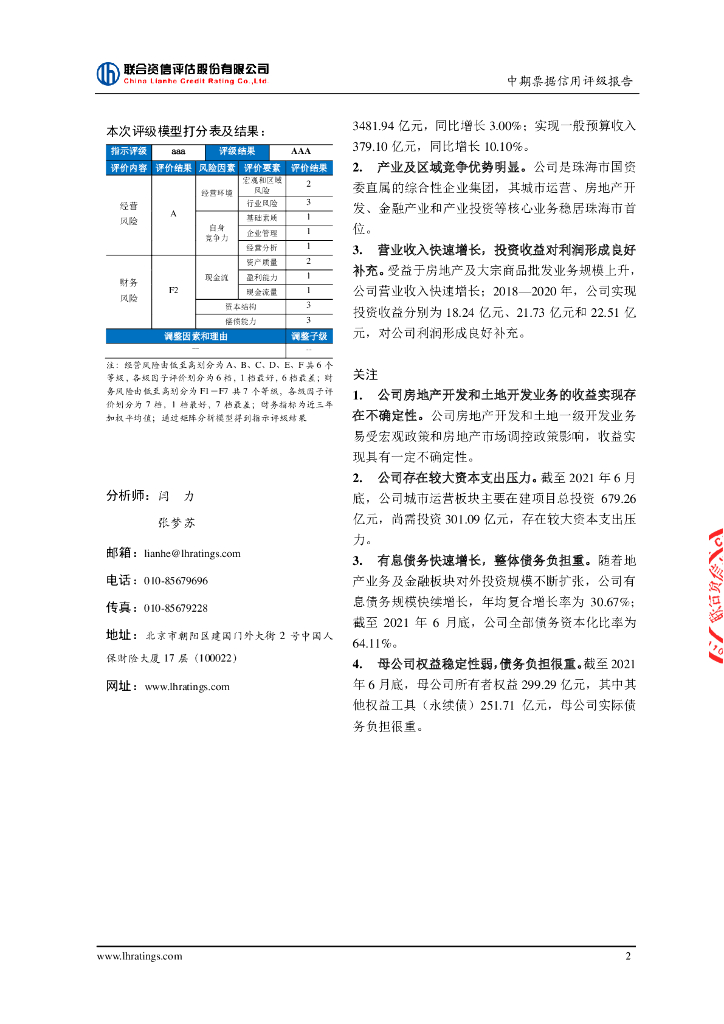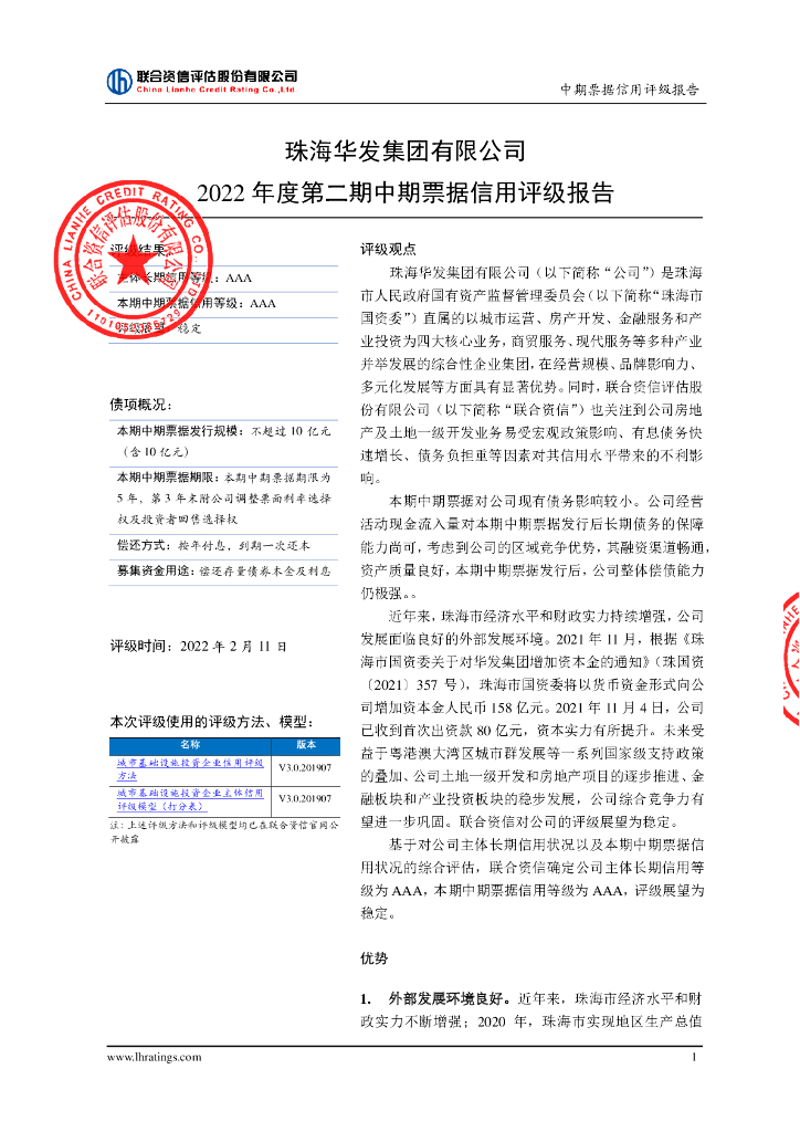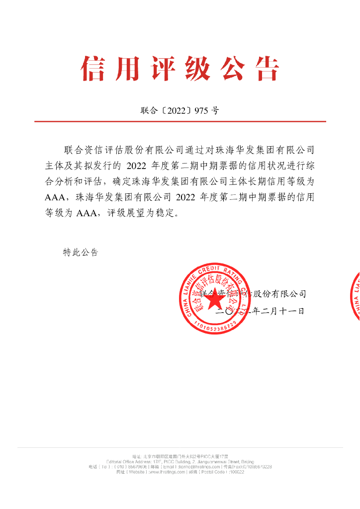 联合资信:珠海华发集团有限公司2022年度第二期中期票据信用评级报告.pdf