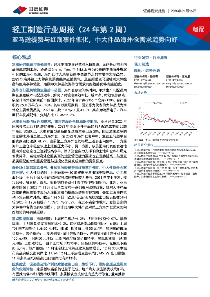 国信证券:轻工制造行业周报(24年第2周):亚马逊提费与红海事件催化,中大件品海外仓需求趋势向好.pdf