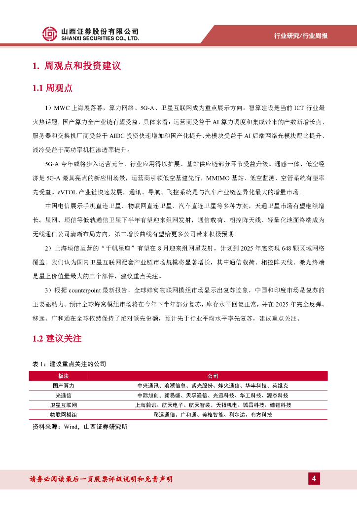 山西证券:通信周跟踪:MWC上海5G-A和卫星通信是亮点,垣信千帆或将迎来首发.pdf