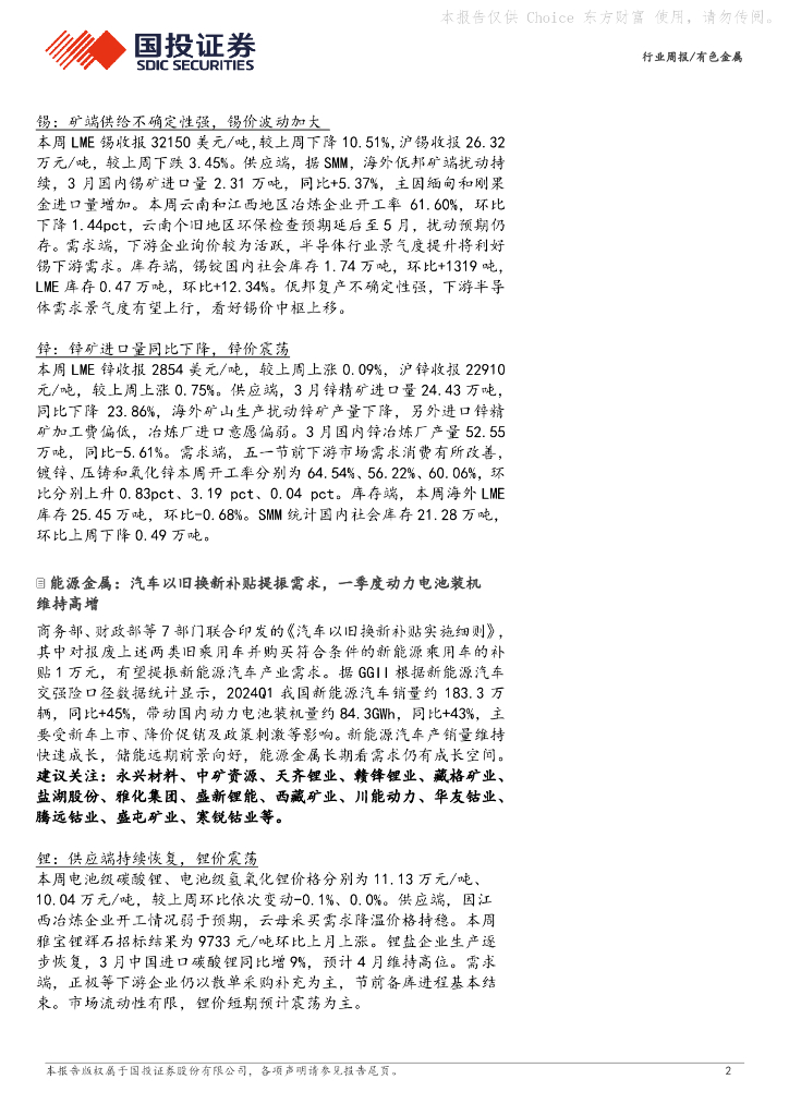 国投证券:有色金属行业周报:矿端供给扰动持续,以旧换新政策提振下游消费需求.pdf