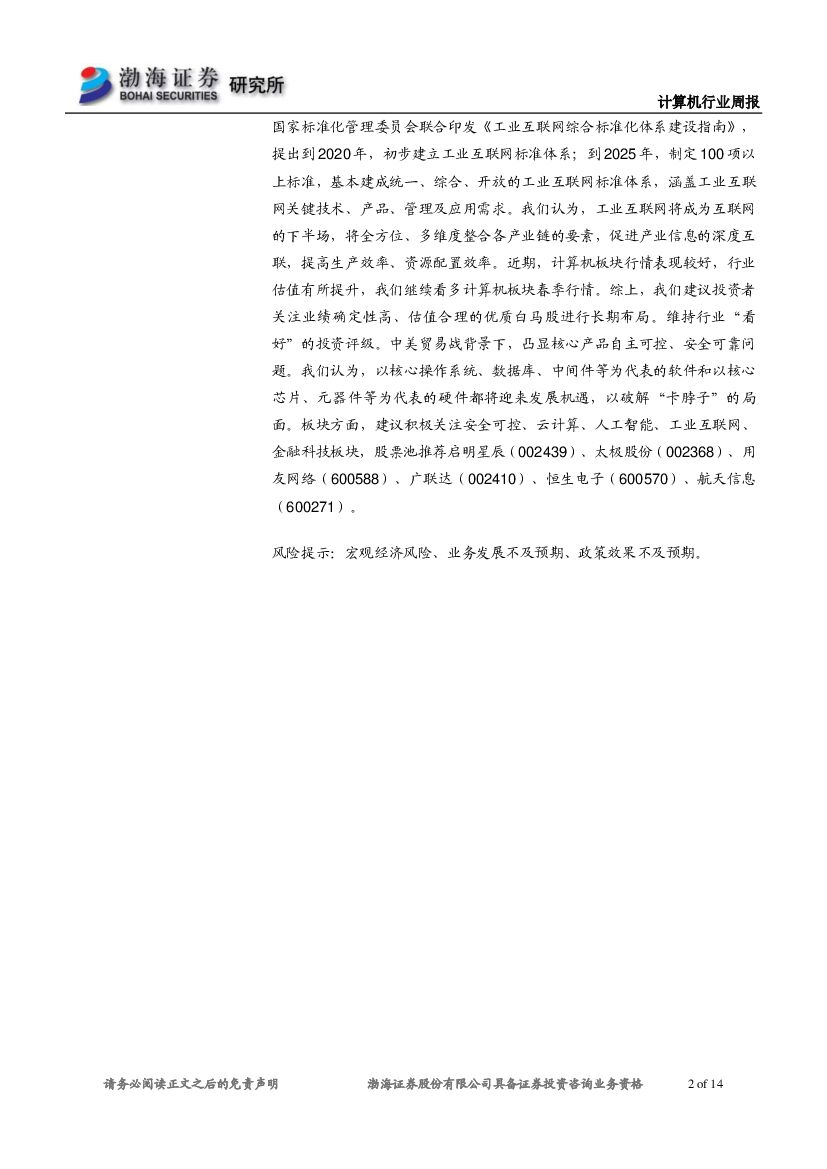 渤海证券:计算机行业周报:工业互联网首度写进政府工作报告,建议积极关注.pdf