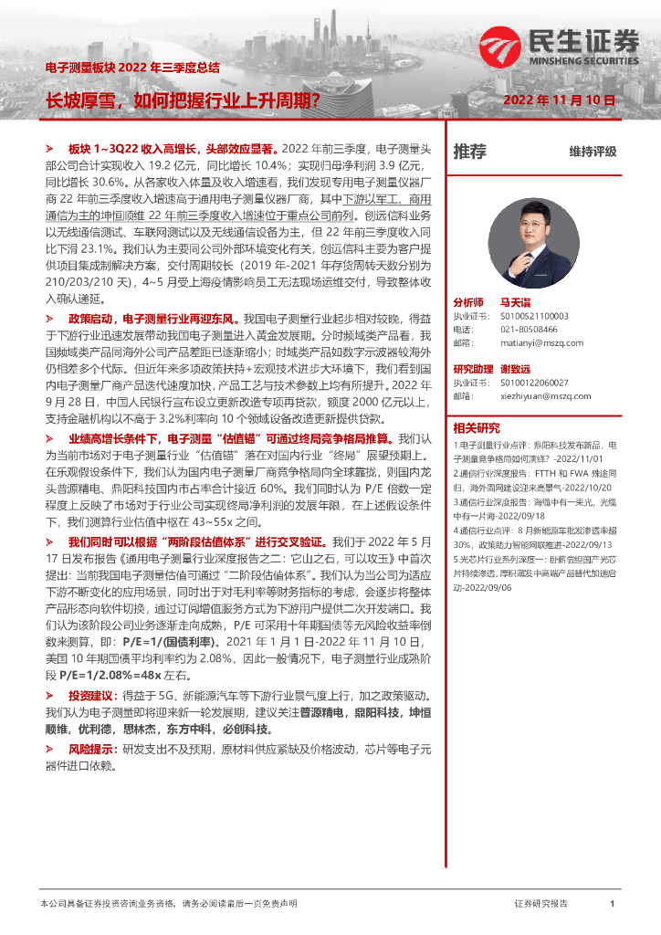民生证券:电子测量板块2022年三季度总结:长坡厚雪,如何把握行业上升周期?.pdf
