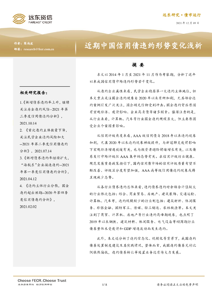 远东资信:近期中国信用债违约形势变化浅析.pdf